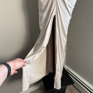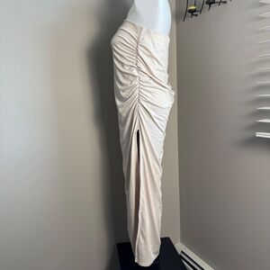 SWS Contour Strapless Tube Dress Beige/Cream Large Ruched Sides Graduation Prom