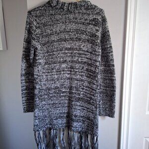 Black and white marled cardigan with tassles