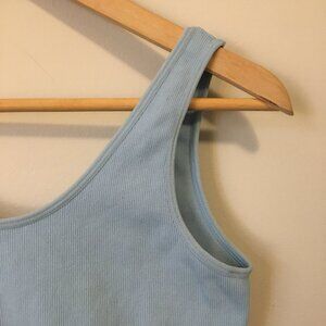 Good preowned condition, pale blue, relaxed fit sports bra by SWS Essentials. Tag has been cut out, but seems like it is either an A cup or small.