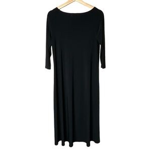 SYMPLI Black Midi Dress Hi-Lo Hem 3/4 Sleeves Laser Cut Bodice Detail US SZ 6