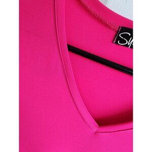 SYMPLI Canada Slinky Stretch Bright Pink V Neck Short Sleeve Tunic Tee Top Sz 10