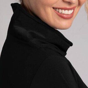 SYMPLI - Funnel Neck Dolman T-Shirt, Size 14, Black, *NEW, never worn. Elevate your wardrobe with this chic SYMPLI Funnel Neck Dolman T-Shirt in classic black. Designed for effortless style and comfort, this top features a relaxed dolman sleeve silhouette and a modern funnel neckline for a sophisticated touch. Made from high-quality, wrinkle-resistant fabric, it drapes beautifully and moves with you throughout the day. Perfect for layering or wearing on its own, this versatile piece is ideal for any occasion. MADE IN CANADA