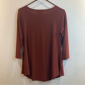 SYMPLI SZ 8 chocolate Brown Flowy Slinky Cowl Neck 3/4 Sleeves Tunic Top Blouse. No fabric tag. Gorgeous capsule wardrobe piece. Dress up or down.