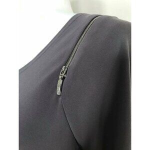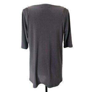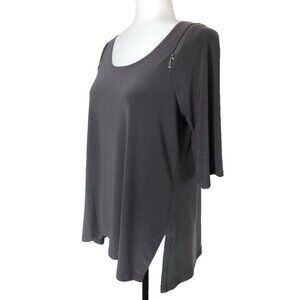 SYMPLI Tunic Blouse Top Size 10 Gray Stretchy Jersey Knit Zippered Shoulders EUC
