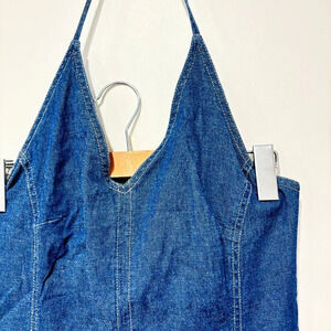 SYSTEM TAG Halter Top Denim Dress | Y2K Blue Jean Mini Dress *