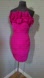Marchesa Notte strapless fuchsia draped silk dress US 4 with silk chiffon ruffles at the neckline, the dress is fully lined with a boned bodice that works like a corset, closes in the back with a zipper and hook and eye closure.