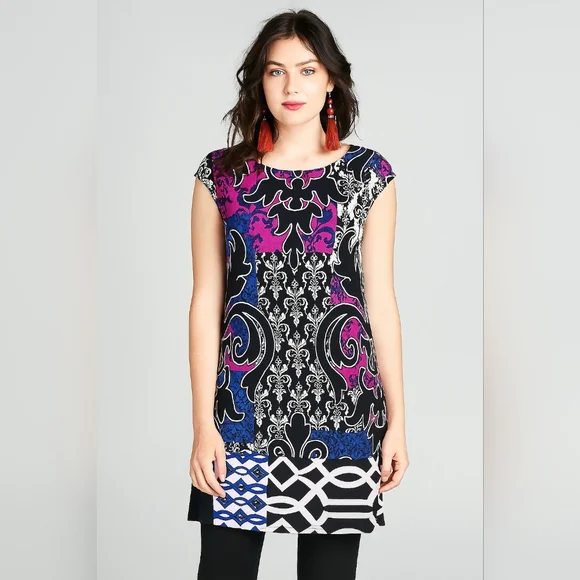 SZ4 Joseph Ribkoff Multicolor Patterned Mini Dress Style Tunic