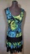Elegant sleeveless drop waist midi dress with striking blue and green butterfly pattern print. Features a flattering fit and unique design.