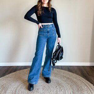 🇫🇷 SÉZANE ✨ 70’s Trousers in Blue | FR 40 US 8 | High-Rise Wide-Leg