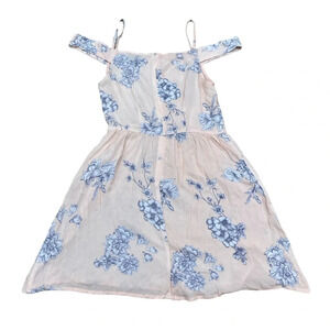 This Sabo Skirt mini dress brings a touch of romance to any occasion with its delicate floral print in shades of pink, white, and purple. Designed with off-the-shoulder straps, spaghetti straps, and a straight neckline, it combines style with a flattering fit. Perfect for warm days, beach outings, or special occasions, this Size Small dress is both feminine and versatile. #SaboSkirt #FloralMiniDress #OffTheShoulder #RomanticStyle #SummerFashion