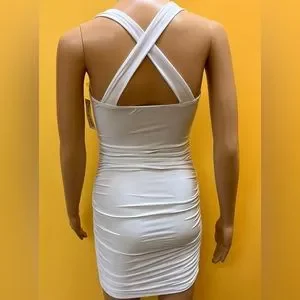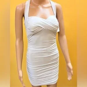 White Halter Bodycon Dress. Built in Cups.