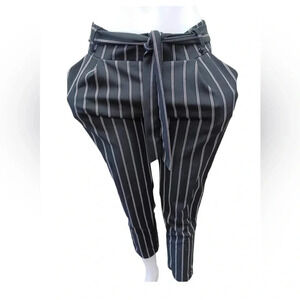 Sabrina Diamanti Black White Pinstriped Paper Bag Waist Pants Size Large