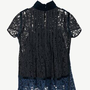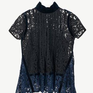 Sacai PF16 Black & Blue Lace Velvet-Trim Blouse