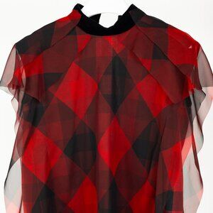 Sacai R/22 Red & Black Buffalo-Plaid Chiffon Blouse