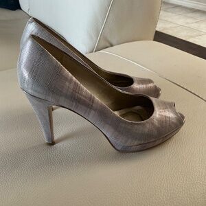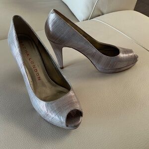 Sacha London, Size 9, Soft Shimmery Lilac Peep Toe Leather Upper Pumps.