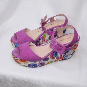 Sacha London Y2K Purple Embroidered Floral Wedge Heels Sz 9