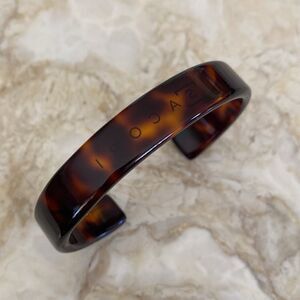 Cool unisex cuff style bracelet made of faux tortoise shell, looks good alone or stacked with other bracelets. Unisex piece. In as new condition.