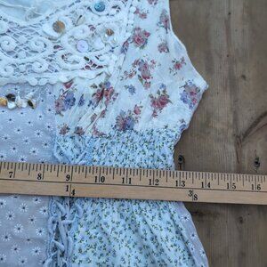 Sacred Threads Boho Short Mini Dress Women's M White Floral Tiered Seashell.
