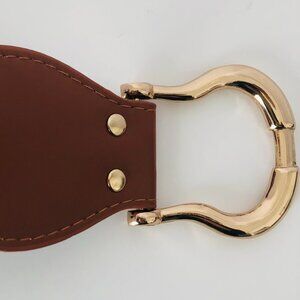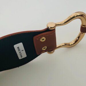 Saddle brown equestrian-inspired style faux leather wide stretch belt – small