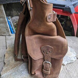 Absolutely gorgeous piece of leather, like all SBL pieces! It has "K" and "N" stamped on both flaps of the side pockets. It's not very obvious but it's there, and the price reflects that (this backpack retails for US$659 plus tax). This backpack has not been treated with anything by me, just stored in a spare bedroom. The leather is soft and supple and thick. Smoke free, pet friendly home. This is your chance to own a legendary piece of SAddleback Leather for a small price tag!