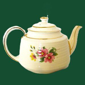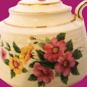 Sadler (the popular desirable vintage teapot) England, pink dogwood flowers, yellow flowers & greenery made in England circa 1940's. James Sadler & Son Mfg Ltd founded 1882.
