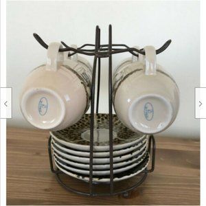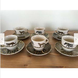 Safari Coffee Tea Cup & Saucer Set with Wire Carryall Tiger Zebra L Dake & ZN