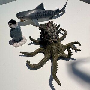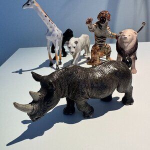 Set of 10 detailed safari animal figurines, including big cats, primates, and more. Perfect for playrooms, teaching, or décor. Solid, durable, and in great condition. Ready for a new adventure!