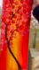 This captivating painting showcases a cherry blossom tree branch in vibrant red and pink hues against a dramatic sunset-like background. The use of a dark silhouette for the branch creates a striking contrast, while the warm gradient of the backdrop adds depth and movement to the piece.