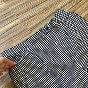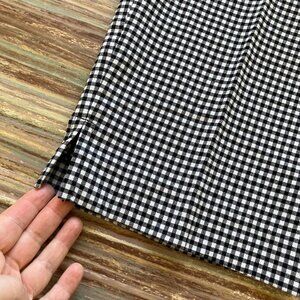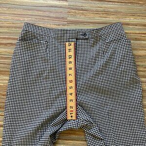 Sag Harbor women's black & white gingham pattern cropped pants. Two pockets at front hips, zip fly with elastic waistband sides. Tag size "16" - see below for garment measurements. 63% polyester/34% rayon/3% spandex. Good pre-owned condition.