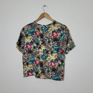 Vontage Sag Harbor Petite Womens Short Sleeve Tropical Blouse Shirt Hawaiian Floral Multicolored Keyhole Button Back