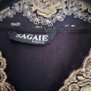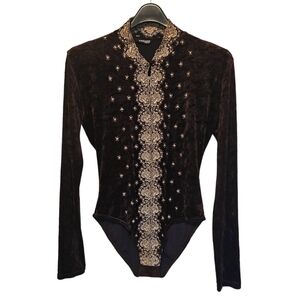 Sagaie Paris velvet bodysuit strachy brown gold color embroidery size small