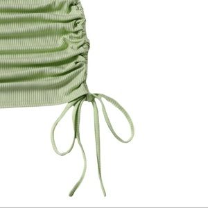 Romwe Sage Green Contrast Lace Drawstring Summer Dress