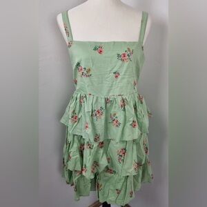 Sage Green Floral Ruffle Tiered Square Neck Dress NWT