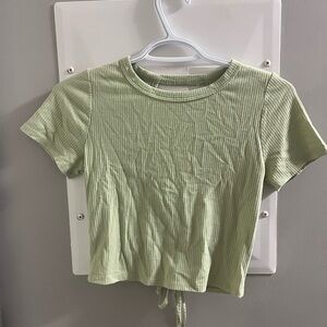 This chic sage green crop top features a stylish tie front design and short sleeves, perfect for a trendy summer look. The plunging V-neckline adds a bold touch, making it an eye-catching choice for casual outings.