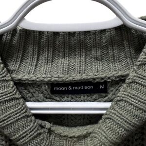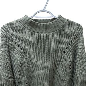 green chunky knit sweater. In good preworn condition. No rips or tears. Great piece for layering or styling as is!