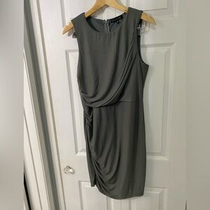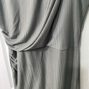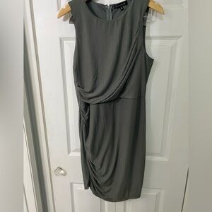This sage dress is so comfortable, stretchy material. Great for office or a night out!