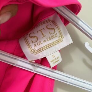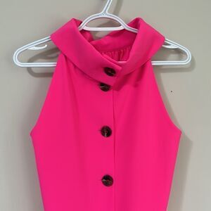 Sail To Sable Neon Pink Rolled Neckline Sheath Dress W/ Large Back Buttons