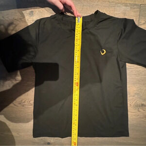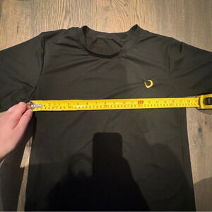 Like new, never worn. No size and no materials label - based on how it feels, this is 100% polyester. Listing as M but please check the measurements. It has a stretchy and soft construction and the fabric is of a medium thickness.