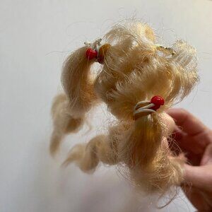 Preowned condition with some areas of wear. She is missing her outfit but does have her original hair ties and plastic headband. Headband is damaged at one end however, and possibly needs to be super glued down to stay in place.