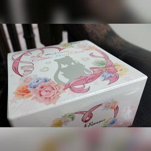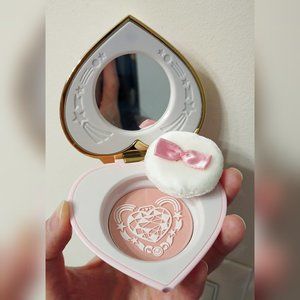 Brand new and unopened from Japan. The blush is a peachy-pink colour. The pictures of the opened product is my own compact, but I have also never used it so I cannot provide swatches. I only opened mine so that you can see the beautiful details and size. I am selling my second one brand new in box, which is completely sealed in original packaging. Perfect for Sailor Moon lovers and makes a great collector's item.