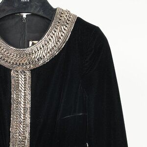 Saint Laurent AW/14 Runway Black Velvet Chain-Embellished Mini Dress