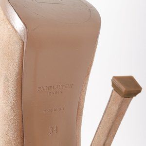 Saint Laurent Beige Suede Patent Leather Tribtoo Platform Pumps