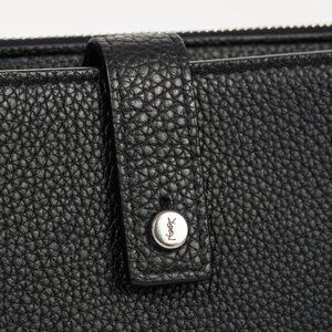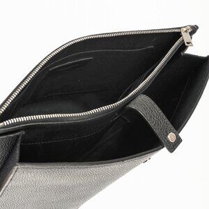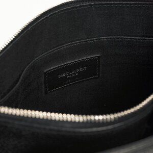 Made in Italy, this clutch from Saint Laurent is crafted in a black pebbled leather, and features silver-tone hardware, a gusseted compartment with a branded snap-closure strap, a zip compartment lined in a tonal textile, two slip pockets, and six card slots.