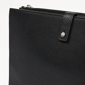 Saint Laurent Black Pebbled-Leather Flat Snap-Closure Clutch