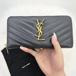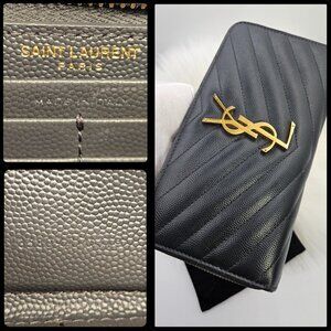 A lovely piece zip around wallet featuring the metal cassandre and matelassé stitching.