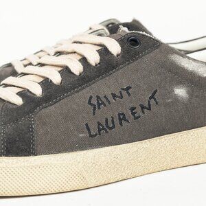 Made in Italy, these SL/06H low-top sneakers in the Black colourway from Saint Laurent are crafted in a grey distressed canvas on the upper, and are trimmed in a tonal suede. They feature closed rounded toes, black embroidered signatures on the sides, front lace-up fastening, leather lining, and rubber outsoles.