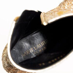 Saint Laurent Gold Glitter Ankle Boots Hedi Era EU 36
