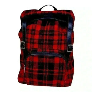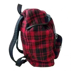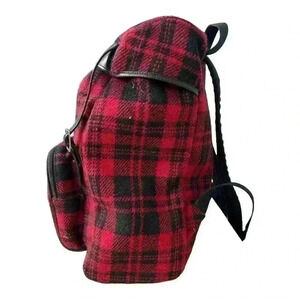This authentic Saint Laurent Hunting Backpack Wool is a luxe backpack combining style and comfort. Crafted from stand-out red and black tartan plaid wool with black leather trims, this runway-ready backpack features dual flat adjustable backpack straps, flat top handle, Saint Laurent logo embossed at top center and back bottom center patch, exterior front zip compartment and silver-tone hardware accents. Its buckled flap top with drawstring closure opens to a spacious black fabric-lined interior perfect for storing all essentials.