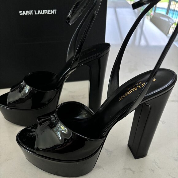 Saint Laurent Jodie Black Patent Leather Platform Sandal Size 40EU - NWT