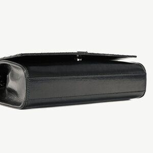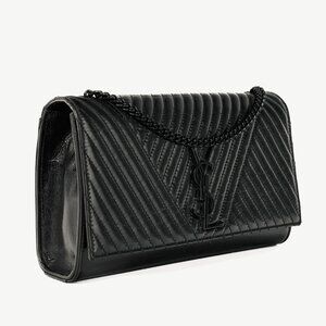 Made in Italy, this crossbody bag from Saint Laurent is crafted with a black quilted matelassé leather, and features tonal black hardware, a chain shoulder strap, and the iconic YSL monogram on the front. Secured with a magnetic-snap closure, the front flap opens to a tonal suede-lined interior containing a slip pocket.